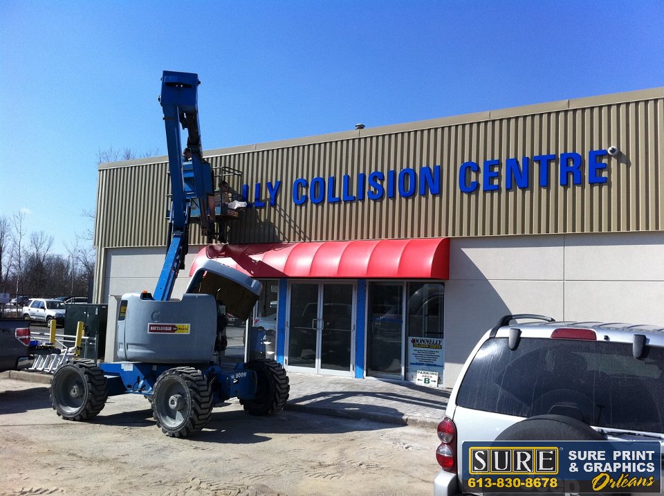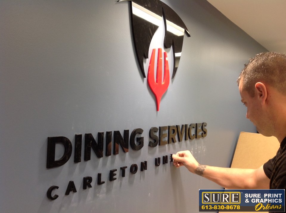 3D lettering installed on existing exterior panel