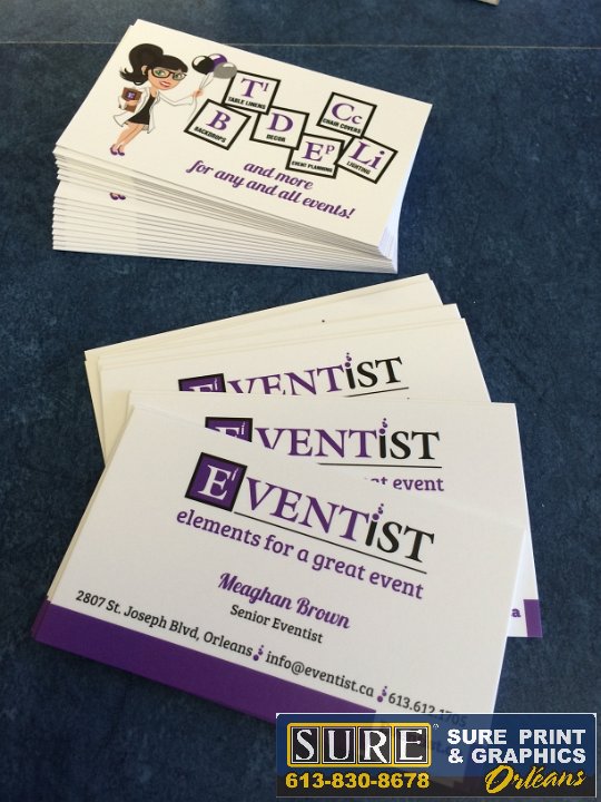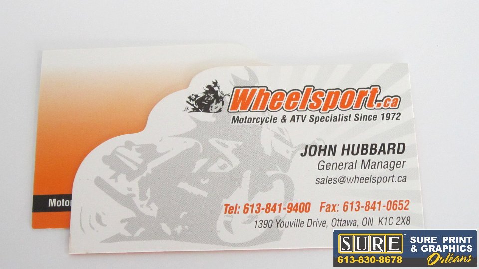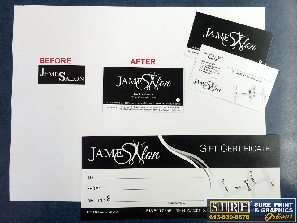 Business Cards  We want your business cards to work for you and your business.  The design, printing type should suit your business look.  Come see us to find out what the latest trends are!  Wheel Sport  Special shape! 2-sided business cards die cut to a custom shape - stands out from the rest!  EVENTist  James Salon  Logo design along with matching business card and gift certificates