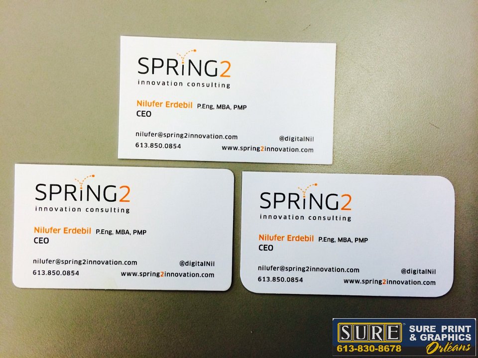 Painted Edge  The latest trend in business cards!  Spring2  Various corner rounding size and combination adds another depth to business cards  Main Monkey's  IMG 9371  These business cards have many high end options!  Including 32pt card stock with silk finish, silver painted edges, silver foil and spot varnish.  This photo does not do it justice! Check it out on our YouTube!