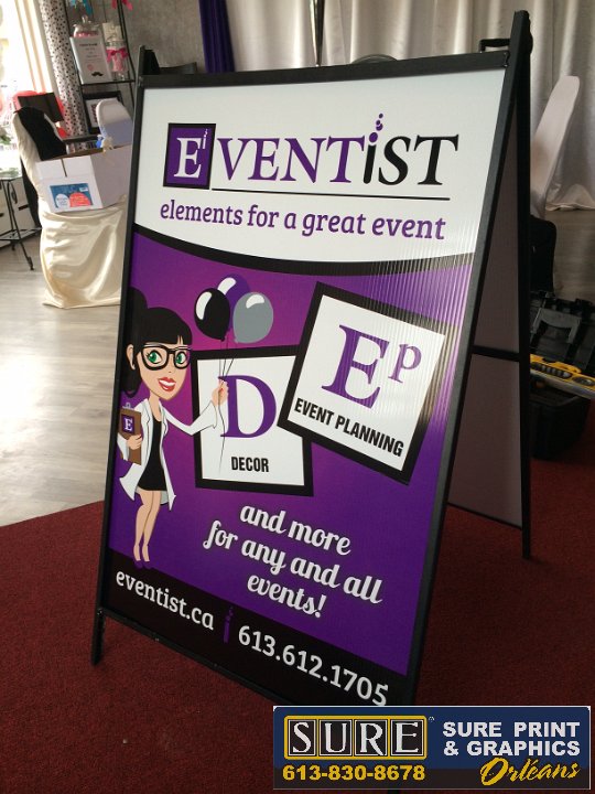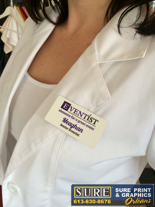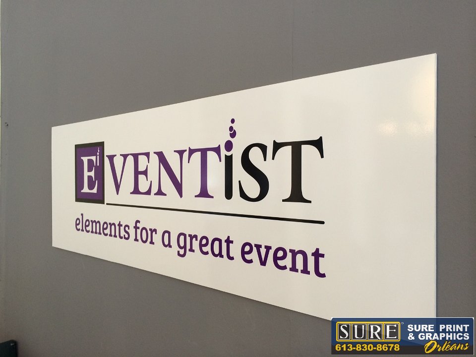 Eventist NameTag  Magnetic name tags  Retractable Banner  For tradeshows and for showroom display  Reception Sign  Installed at front desk wall  Exterior door lettering  Address in cut vinyl and store hours printed and cut to shape